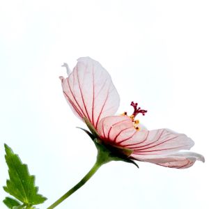 見て!タカサゴフヨウ(高砂芙蓉) 後ろ姿が可愛いです。 光を通して後ろから見ると赤い筋が綺麗です。