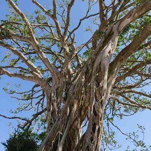 南部のヒンプンガジュマル これから気根(きこん)が沢山伸びて幹を取り囲み、そのまま巨大な胴回りを形成して行きますよ|´∀`) 別名[絞め殺しの木]と言われる所以ですねぇ‹‹\(´ω` )/››‹‹\( ´)/››‹‹\( ´ω`)/›› 前回の台風で葉っぱが殆ど吹っ飛んだけど青々とした新葉が展開してますよ( -`ω-)b