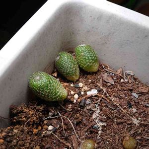 【成長記録用】 壁]ω`)コンチワー 昨年秋蒔きのユーフォルビア・オベサさんですよ ‹‹\(´ω` )/››‹‹\( ´)/››‹‹\( ´ω`)/›› 5粒購入して発芽率100%、やはり種は鮮度が大切ですよ (・∀・) 双葉枯れたら植え替え予定です |´∀`)