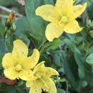 昨日の山で見つけたお花② オトギリソウでしょうか⁉️🌼🌿 もうお花も終わりのようでしなしなでした オトギリソウは 花径は15〜20㍉くらいで一日花だそうです 花びらや萼片には黒い点や黒い線がありやや縁に多い 葉も裏面から透かすと黒い小さな点が散在している 花の後になる実はさく果で熟すと下部が裂け種子が散布される