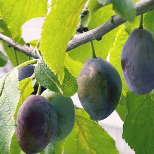 プルーン💜♪♪ 今朝、キウイの様子を見に裏山に行って、プルーンの木に実が成っていることに気付きました🤗 殆どキウイの台木の役割りで、実は忘れた頃に1、2個程度しか成らなかったプルーン、見える限りで4個…見~つけ👀‼️ 久しぶりの晴天で、何だか朝から嬉しい ♪ヽ(*´∀`)ノ 今日もいいことありますように… (*^o^)/\(^-^*)