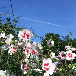 庭のムクゲたち 特にムクゲ好きではないけど 丈夫で長く咲いてくれ 家と裏庭との仕切りに植えてます