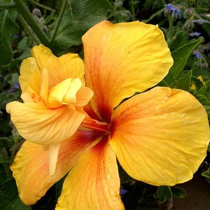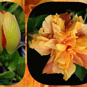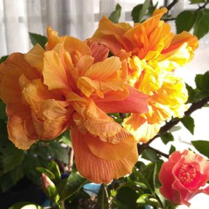 フルムーン🌺🌝🌺八重咲きハイビスカス① 夏期は🟡黄色なのに 冬期は濃い🟠オレンジ色になりますね 205.2-23