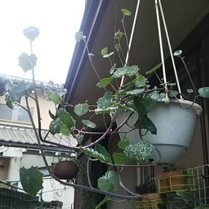 オキシリイフォリウス グリネとかと同じ蔓性のセネシオ。 検索しても育って方とか出てこないんだけど、冬に落葉して消えた。 でもセネシオだからきっと大丈夫❢とか思ってて、水だけやってたら春に新芽出てキター\(´ω` )/ それからは急成長中❢ 去年より葉も増えてるし、垂れ下がってくるのが楽しみ♡