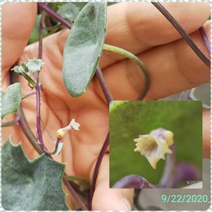 オキシリイフォリウス こちらは多肉植物の蔓性セネシオ。 今年は植え替えて、勢いが出てる♪ パープルバインはコレに似ているなと思う。 オキシリイフォリウスは茎は紫だけど、葉の裏は緑。