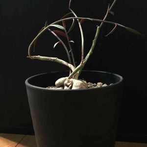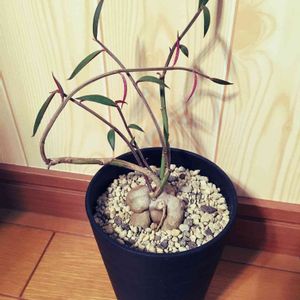 モナデニウム・ルベラム 挿し木でも、葉挿しでも塊根ができるという優れもの! ...が、ウチではまだ挿し木も葉挿しも成功しておりません... 来年こそは(>ω<)