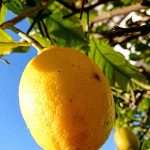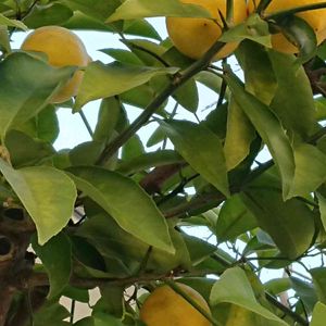 レモンがたわわ。 散歩中にふと頭を上げるとレモンが迫って来ました。