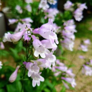 一年草は切り戻しの時期なので 花壇の宿根草が楽しませてくれます。手前のエキナセアやアルメリア、カーネーションと比較するとペンステモンの大きさや花つきの良さが際立ちますね。 倒れるので野菜用の支柱で支えてますが もう少しオシャレに支えてあげたい😂 最初は麻紐でくくってただけなのでまだいっか💦 ペンステモンのお花は一瞬で終わるけど 優しい色のお花なんですよねぇ…花壇じゃなくて小さくてもお庭だったら年々立派になる宿根草植えるのになぁ… 10年先を考えると植えられない… チェリーセージ植えたら巨大な低木になってきて引っこ抜いたことが😣ラベンダーもラムズイヤーも地植えする勇気が出ない😓
