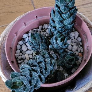 去年だったかな? DAISOで見かけた洗える、レンジも使えるバスケット🧺 ここ数年 浮き沈みはあれど やはり私もタニラーの端くれ(自称)😏 レンジで使えるなら、外の暑さにも強いということ?劣化もしにくいかも? もうそうなると… もはや多肉植物を植える鉢にか見えません。(タニラーあるある) そう思って買ったバスケットだけど、腰が重いのはいつものこと。 で、やっとやっと形になりました😆 そのまま入れると土が流れてしまうので、生ゴミネットを敷いて土を入れました。あとは比較的強めの普及種を寄せました。(結局水やりすると細かな土は流れました💦) 2枚目 2017年から5センチほどの小さな『十二の塔』の親株は、9年間植えっぱなし(少し土橋入れ替えたりしました)高さ20センチ以上に育ち、2年前から斜めに育つのでなんでかなと思っていたら、そこから小さな赤ちゃんが顔を出していました😊 ある程度育ってから、根本から出てきた子たちそれぞれの子株を独立させました。 オブツーサは5つ子ちゃんを株分けしました。 ゆっくり元気に育ちますように🥰