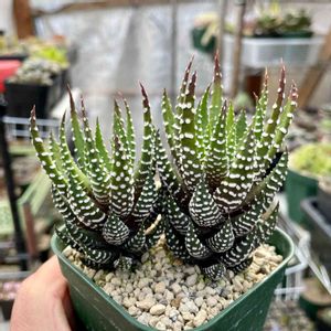 「十二の日」参加します 大好物の硬葉ハオルチア 色々な十二の仲間 十二じゃないのもいる ↖️手前 名札なし 後ろヌーダム(謎)とアテナータ(=松の雪?) ↗️手前 十二の巻 奥 白蝶?←十二の巻の白斑 暴れ丼仕立て𐤔𐤔 ⬅️スーパー ファシアータ (fasciataは十二の巻) どの辺がスーパーなんだろうか ➡️星の林→十二の塔と同じ ⬇️白鳥←これも十二の巻の白斑 先日のビスタさん購入時の太っ腹なおまけ 色々違いを書こうかなと思ってたけど名前を整理するだけで疲労困憊…( 𖦹◽︎ 𖦹)💫 つぶつぶ模様で画面チカチカ✧︎(笑)