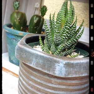 今週は、 【硬葉ハオルシアのチェック週間】👀🔍 昨日偶然に、ひとつチェックしたから ついでに他の子もと思いたちましたー。 硬葉のハオさんは、人気はイマイチなのかなぁ😕 私は好きです! 成長はゆっくりだけど、徒長しにくいし 群生した姿はなかなか素敵です💖 これは、十数年経っています。 小っちゃいひとつの株からここまでなりました〜♪(๑ᴖ◡ᴖ๑)♪ 十二の塔(星の林) ずっとベランダのちょっとだけ日の当たる場所。 静かに少しずつ子供を増やして、 近頃、大分 幅をきかせてきましたよ〜d(^_^o) この鉢であとどのくらい いけるかナ😊