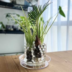 100均の保水ポリマーと透明ガラス・受け皿で涼しげ🎐 チビ蘇轍が南国風で◎