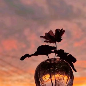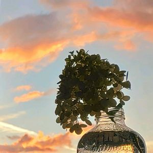 雨上がりの夕暮れ空が 徐々に染まってゆく 久しぶりの夕焼け空に心がはやる ガラス器に挿した紫陽花と しばし堪能