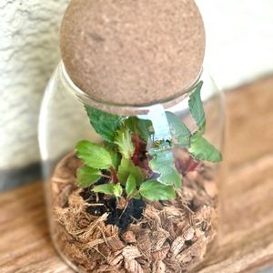 おはようございます🌞 小さなベゴニア。 タグにはBebeと書いてありました。 少し窮屈そうではありますが、ガラス容器の中は、ほど良い湿度が保たれていて、1週間くらいは水やりしなくても良さそうです。 あまり暑くなると蒸れてしまいますので、涼しいところに置いておきます。