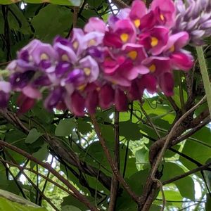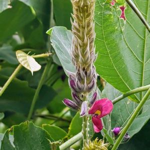 9月29日 今日のお花 🌿💜🩷🌿クズ🌿🩷💜🌿 秋の七草の一つ。つる植物でほかの植物をおおうように茂り、茎や葉に茶色の毛が多い。花は蝶形で、穂になり、葉のつけ根に上向きにつく。根からは葛粉がつくられるが、今はイモ類からつくられたものが多い。 花期 8〜10月 分布 北海道〜九州 🏷️愛しの紫 2025.9/19 撮影