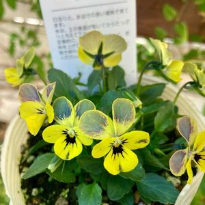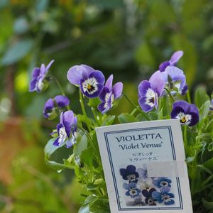 【ビオラ】 ①② 『ビオレッタ V.ビーナス』 このブルーがどうしても気になり お迎えしちゃいました💙 ③④ 『ビオレッタ ルーキーズ』 お耳だけピンクのグラデーションでとっても可愛い💕 ルーキーズから好みの子を探すの楽しいです🥰 ビオレッタは頑張って厳選し2つに絞りました。 本当は反転咲きもお迎えしたかったのですが…次回‼️ 可愛い子に出逢えますように🙏 ⑤は 『ビオレッタ ミルクパイン』 見つけた💡 お耳の中が黄色い可愛い子💕 昨シーズン『ミルクパイン』育てたので、この子は母に育ててもらいました🤭 めちゃ可愛い💛 私がよく行く園芸店 ラベルの真ん中にバッチリ値札貼るんです… ラベルも好きなので裏側に貼って欲しいなぁ…