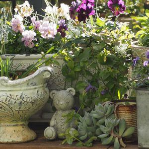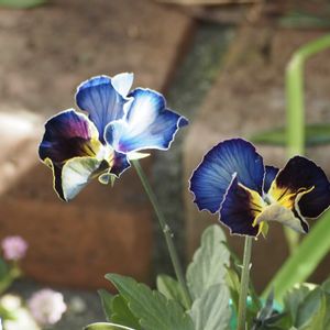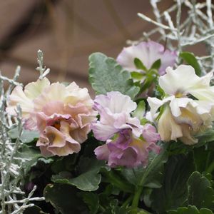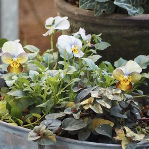 【ビオラの寄せ植え】 『ファルファリア No.79』 『のんのんスミレ』 アンティーク感が似合っていたので 寄せ植えにしました☺️