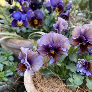 【ビオラの寄せ植え】 ゲブラナガトヨ 『ミステリアスシリーズ アマゾネス』 爆咲き始まりました🤩✨ 本当に素敵色ですよね❣️ 何やら… 黄色ちゃんと茶色ちゃんも出没し… おチビちゃん(だいぶ大きくなった)と合わせると4種のビオラが入っていました❣️ ゲブラさん太っ腹😆✨ 後ろのビオラは 『君待ちレディ』 この子も本当に素敵なお色です😍 『プリムラ アンティークマリアージュ』も 花数多くて嬉しい💕 カゴいっぱいのお花になりました🧺🌸