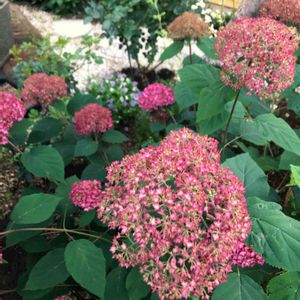 沢山咲いているピンクアナベル 雨☔️でうなだれちゃうかな💦