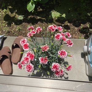 駅の広場の植物が、暑さで枯れるなか、ミニカーネーションだけ、元気でした🌸🩷💕🎶🌿