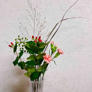 ☀️こんにちは😃 『ミニカーネーション』 お正月から玄関にかざられた生け花の カーネーション 薄い黄緑色が爽やかな感じで好きです 赤い実はシナヒイラギモチです 我が家の玄関は陽当たりが悪く寒い為 花持ちは良いです