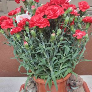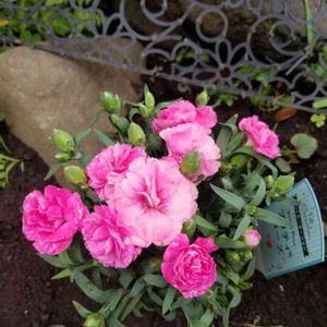 おはようございます😹 ミニカーネーションが 沢山咲きました🙌 1つだけ🧐色が🤔🤔 変化があって楽しめますが?なんでかなって😅