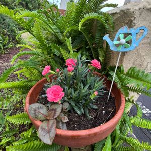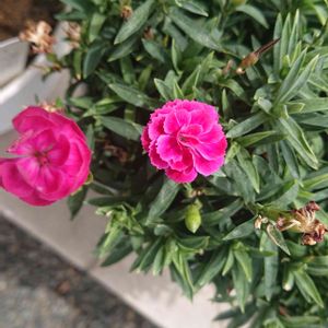目が疲れやすくなっているので、GSも久しぶりの投稿です🙋 外は凄い土砂降り、雷も鳴っています⛈️😱 ジメジメで軒下のお花さえ調子崩しそうです😵 そんな中、切り戻したミニカーネーションが1輪咲きました💮 気持ちがちょっとだけ上がりますね😊⤴️