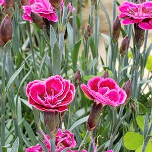 おはようございます😃 小さな株ですが去年も咲いていました💕💕 ミニカーネーションです💖 色が綺麗で庭が明るくなります👍🎶💖 昨日梅雨入りしました〰️☔️ ひと月もこんな日が続くともうと憂うつです😆☔️ まぁ水やりの手間は省けますけどね😁🤭 今日も皆様にとって良い日になります様に💕💕💕