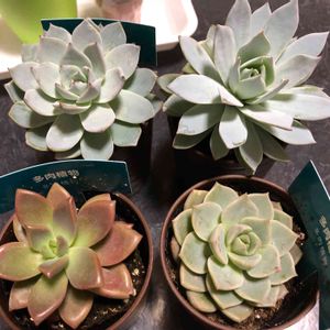 いつも行くところではないダイ○ーで綺麗な多肉さんを発見(((o(*゚▽゚*)o)))♡ 安定の名前わからんさんばっかりだけど好みの子たちだからオッケー👌 でもこんなにしっかりしてる多肉さんが100円は絶対にお得❣️ 長く陳列棚に居る多肉さんは原形がわからないくらいに徒長してましたけどね😓