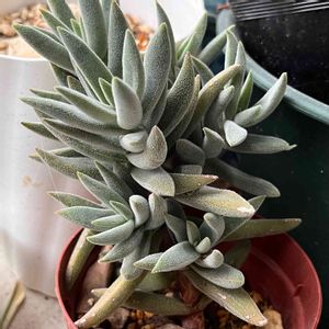 ダイソー初多肉 3年目 冬に9割放置して改めて写真撮ってみたら 勝手に増えてる特に奥 なんだか奥がわちゃわちゃしてるう💦 ルンヨニーとメビナとマッコスくんがいたかと思います ちょっとお手入れしてあげないとですね