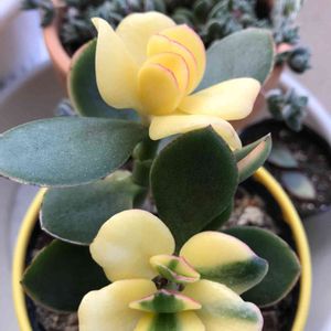 なんということでしょう! 成長過程から(*^_^*)を翻弄し続けた「新 金のなる木 しんしん」! 紅葉しやがりました! _:(´ཀ`」 ∠): かわいくて朝から鼻血吹くかとおもったわ! ……失礼、取り乱しました。 黄色にピンクのふちなんて💞💞 (*´꒳`*)