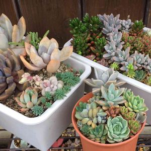 昨日のキャンドゥ 『ヘラクレス』『ギルバ』を 100円ショップエケベリア育成鉢の仲間に入れてあげました❗ 1番左、私のお尻でポキンとされた『レズリー』ちゃん 時計回りに 『マッコス』 『ギルバ』 『トップシータービー』 『ルエラ』 『ブルーエルフ』 真ん中 『ヘラクレス』 下葉を枯らしながらも夏を耐えてくれました✨🌞🌴🏄 ここからイキイキしてね~💓 見てる私も辛かったょ~(笑) 日が暮れるのが早くなり仕事終わった後に植え替えしたかったけど、真っ暗😱 仕方ないので、またまた渋多肉ちゃん用の鉢を黒くして終了🍯 ( ・_・)r鹵~<巛巛巛