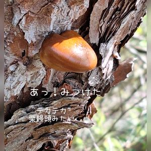 ⰔⱄⱄⰔⰔⱄⱄⰔ テカテカの明るい茶色 🌰ひとくち栗饅頭🥰 ⰔⱄⱄⰔⰔⱄⱄⰔ 成長すると下部に丸い穴が開いて胞子が出るよ 食べれるかって? 残念ながら不味いし 中には昆虫が住んでいることが多いんだ やめとこねNG🙅♀️ このキノコは、 マツが枯れるといち早く発生する 「ヒトクチタケ」です 以下コピペ ↓↓ 尚、一説にはヒトクチタケは枯れてから二年目の松の木にしか発生しない為、このキノコが発生している松の木は枯れから二年目である事が分かるとも言われています とのこと