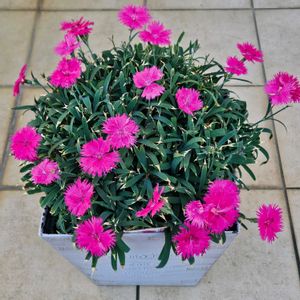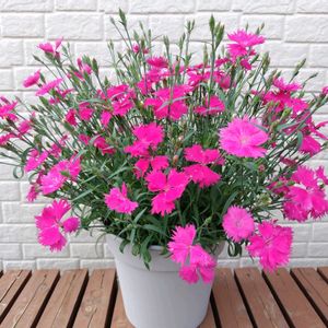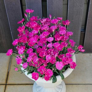 サントリーフラワーズ 爛漫なでしこ ももいろ 8号鉢いっぱいに咲いてきました🩷 蕾もだいぶ上がってきましたのでこれから楽しみです💕