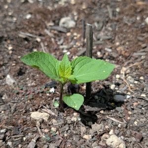 紫蘇の葉っぱ見つけました 去年のこぼれ種から、出来ました 主人は雑草認定してるので、すぐ抜くから、棒を挿しました 夏は大葉があると、何かと助かります お素麺、冷や奴、酢の物には、わが家ではかかせません
