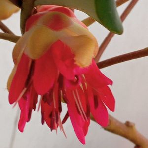🔴🍀🔴 紅花シキミが 咲きました と 思ったのですが… 🙄 これは もしかして ロドレイア? 買った時の名札は シキミでした 🤔 ロドレイアも シキミも 実際見た事がありません でも 皆さんの投稿写真は ロドレイアですね 🤗 なので 有毒では 無かったです 😵