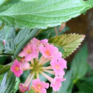 咲き始めのランタナさん クマツヅラ科ランタナ属の低木 単色(桃、黄、紫) 七変化するのも魅力がありますが、 (単色)初々しい姿も良いですね👍️ 花言葉「心変わり」「協力」「合意」と… 「厳格」だそうです。