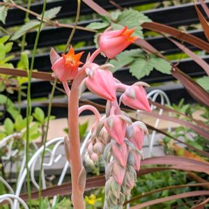 「なんじゃ・こりゃ😳」 珍しく多肉植物の花を投稿します。 通りがかりのマンションエントランス前に この花が咲いていました。 「エケベリア・リラシナ」 ベンケイソウ科エケベリア属の多肉植物 どんな形に花が開くのかも…判りませ〜ん😀