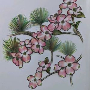 ✨本日のお花✨ 「ハナミズキ(花水木)」 一昨日、写真付きで絵の依頼があった。 荒削りながら、構図から仕上りまでを 昨日中に終わらせてみました。 優しい色にまとめています。🎨✏️🧑🎨🪷