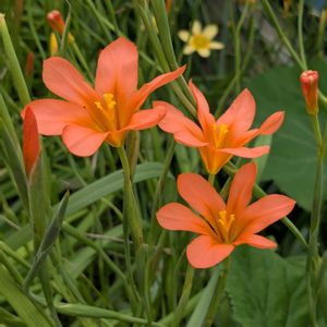 🔰初めましての花が2色(橙、黄) 「ホメリア」という花 ①②アヤメ科ホメリア属の多年草 原産地>南アフリカ🇿🇦 開花時期>3〜5月 ビタミンカラーのスリムな花でした〜 ③ヒオウギズイセン(檜扇水仙) 見たら撮影したくなる花なんです。 ④シラー・ペルビアナ(オオツルボ) 存在感(大)だけど、つい名前が出てきません…(笑) ※買い物途中で見つけた花たちでした🤗
