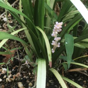 リリオペ ピュアブロンド。 ヤブランのお花が庭のあちこちで咲き出しましたが、こちらもそのひとつ。 🌿がきれいで、大好きです。