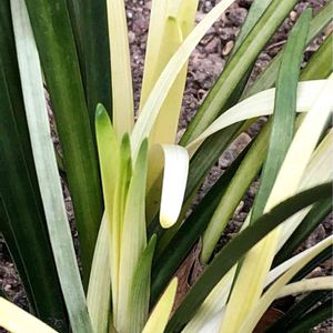最近、多肉植物の右往左往な写真ばかりだったから、他の我が家の植物の写真も…😌 植えてから2年目のピュアブロンド。 初めて花を見た…!!🙄 今は緑が多いけど、年々株が大きく増えて、綺麗なブロンド葉が増えるのが楽しみな子です。 黒竜と交互に並べて植えているので、オセロみたいなコントラストを目指して地道に育ててます🌿