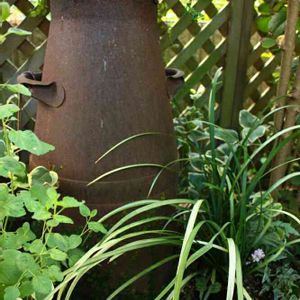 ヤブランのピュアブロンド。 白い葉と緑の葉が分かれていて爽やかな感じ。 1ヶ月以上迷ったあげく、残り1つになってしまったので、観念して購入しました(笑)。 庭のあちこちに置いて、どこに植えようか考えてます。