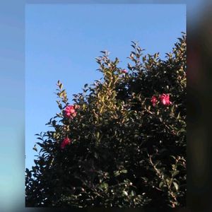 💚スライドしてね。💚 ┏ 高すぎて撮れないんだよ。 ┛ と 頼みました。😄 山茶花 😄 南天 PM3:18・庭先にて。