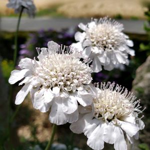 スカビオサ アメジストスノーが咲きました😊 純白の白です😍