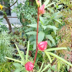 「ハイビスカス ローゼル」です。今日は花が咲きませんでしたが、たくさんのつぼみがついています🥰