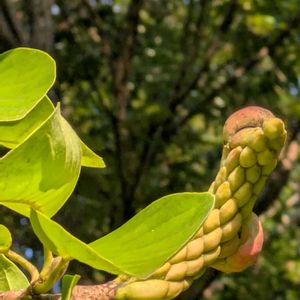 ハクモクレン ヘビがかまをもたげたような実と共に、モフモフの花芽や葉芽が出来ていました。 ハクモクレン モクレン科 モクレン属