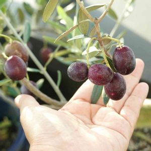 鉢植え1年目のオリーブ ネバディロブロンコが実りました😄✨ マンザニロの受粉用に植えたのに、何故かこっちが実ってしまうという想定外…。 完熟になりオリーブオイルが滲み出ています。 果肉が柔らかすぎて食用には向かないらしいのですが、折角なので収穫して渋抜きしてみます!
