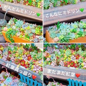 下段左から→紅葉の4段活用! すっかりミドリンの多肉チャンの変遷💚 she(*ฅ́˘ฅ̀*)♡ her(⑉• •⑉)♡ her(ㆁ▽ㆁ; ) hers(´-д-)-3 的な!?💦 ミドリンでも、焦げずに溶けずに夏越ししてね〰️(>人<;)✩⡱