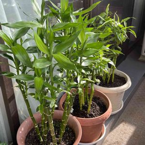 ダイソーのミリオンバンブーたち花瓶から植木鉢に もう少しベランダでいいかな